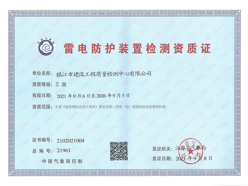 雷电防护装置检测资质证